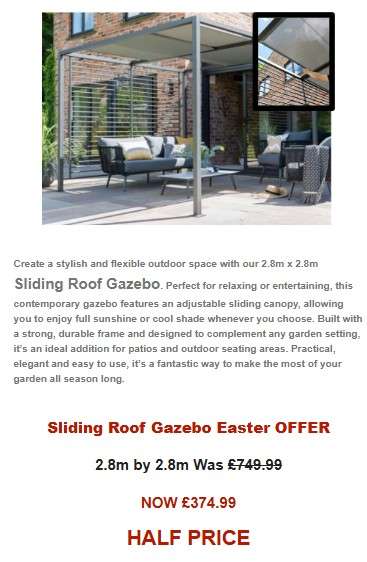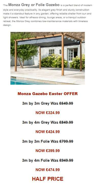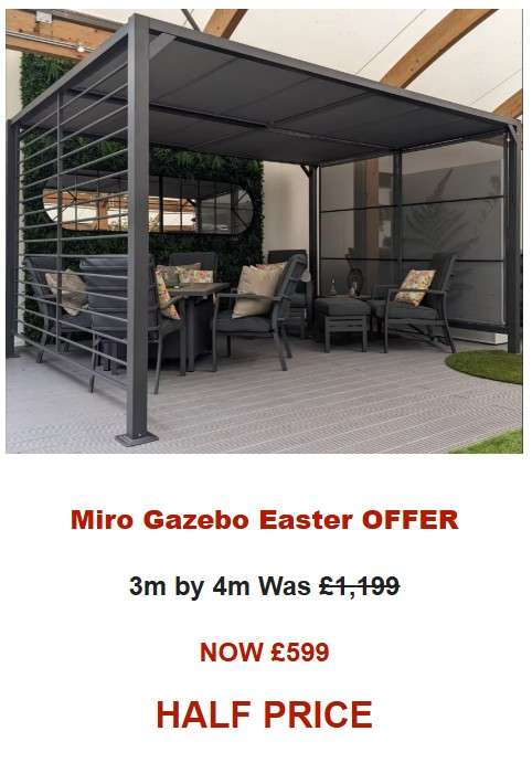 Celebrate Easter in style with stunning savings on a select range of Pergolas and Garden Furniture! Discover exceptional discounts of up to 50% on top quality pergolas and beautifully crafted garden furniture, all showcased across our extensive displays.